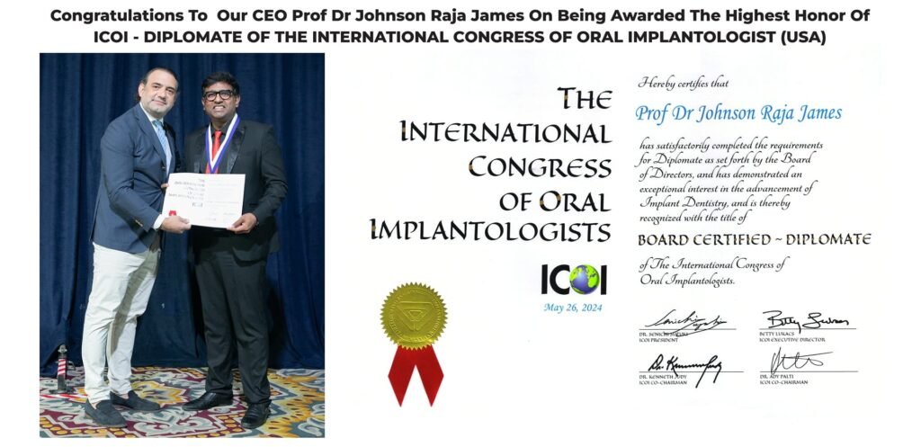 As our esteemed Senior Implant Consultant, Prof. Dr. Johnson R. James leads our highly skilled and dynamic team of Implantologists and Implant Prosthodontists, ensuring that every patient receives comprehensive, personalized, and cutting-edge implant solutions tailored to their unique dental needs. His leadership and expertise drive our commitment to providing affordable, secure, and long-lasting implant treatments, restoring confidence and functionality to our patients.